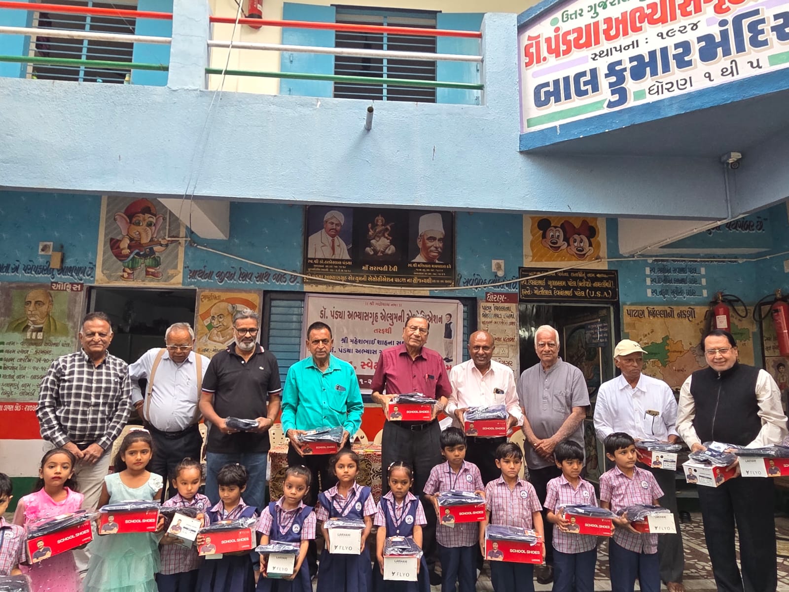 પાટણની ૧૦૦ વર્ષ જૂની ઉત્તર ગુજરાત યુવક મંડળ, પાટણ સંચાલિત શાળા ડૉ. પંડ્યા અભ્યાસગૃહ શાળાના બાળકોને ભૂતપૂર્વ વિદ્યાર્થીઓના એસો. ‘ડૉ. પંડ્યા અભ્યાસગૃહ એલ્યુમિની એસો.’ તરફથી શ્રી મહેશભાઇ રમણીકલાલ શાહના સહયોગથી બુટ-મોજા અને સ્વેટર વિતરણ કરવાનો કાર્યક્રમ આજે ઉત્તર ગુજરાત યુવક મંડળના પ્રમુખ ડૉ. જે.કે. પટેલ અને એલ્યુમિની એસો.ના પ્રમુખ અશોકભાઇ વ્યાસની ઉપસ્થિતિમાં યોજાઇ ગયો.