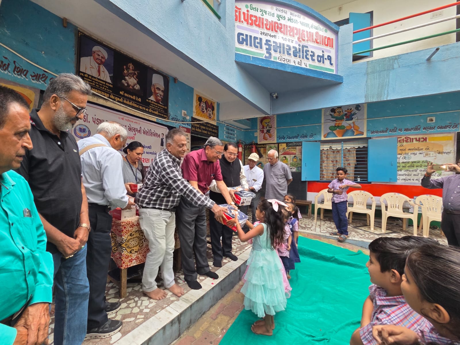 આ પ્રસંગે યોજાયેલ સમારંભમાં આ એસોસિએશનના મંત્રી ડૉ. અતુલભાઇ અગ્રવાલે એસો.ની સ્થાપના બાદ ટૂંકા સમયમાં આ એસો. દ્વારા હાથ ધરાયેલ પ્રવૃત્તિઓનો અહેવાલ આપી આજે શાળાના દરેક બાળકોને બુટ-મોજા અને સ્વેટર વિતરણ કરવાનો કાર્યક્રમ મહેશભાઇ રમણીકલાલ શાહના સૌજન્યથી યોજાયેલ હોવાનું જણાવેલ. આ એસોસિએશનના પ્રમુખ અશોકભાઇ વ્યાસે ભૂતપૂર્વ વિદ્યાર્થી એસો. તરફથી દરેક બાળકો માટે સ્કૂલ બેન્ચીસ, સ્કૂલ ડ્રેસ, સ્કૂલ બેગ, એક દિવસનો પ્રવાસ, ભોજન, નાસ્તો, મેડીકલ તપાસ કરાયા બાદ આજે બુટ-મોજા અને સ્વેટરનું વિતરણ કરવાનો કાર્યક્રમ યોજાયેલ છે.